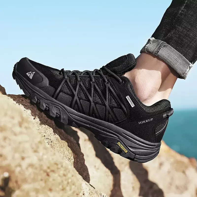 HIKEUP New Arrival Mens Hiking Shoes Breathable Lace Up Trekking Male Cushioning Outdoor Climbing Tourism Sneakers for Men