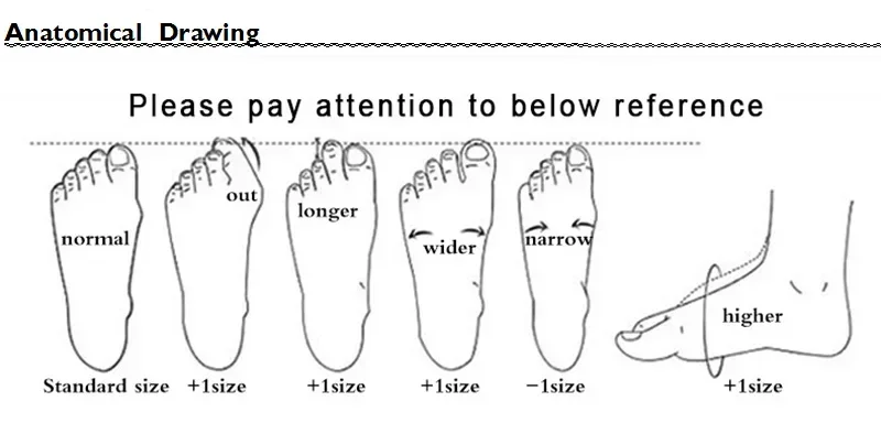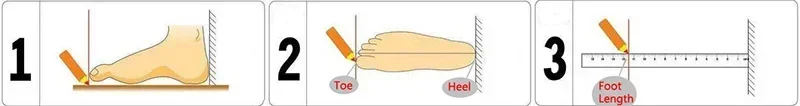 3.Por favor, não meça o comprimento da palmilha, é diferente do comprimento do pé.